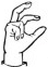 На ћирилици написано ЕЛЕНА БИЗУМИЋ састоји се из 12 слова [?]. Исписано ћириличном једноручном азбуком за глувонеме: